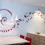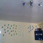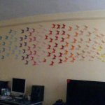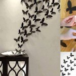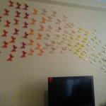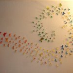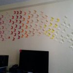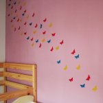 Egyre nagyobb divat lett a falak díszítése matricával, festéssel. Én is sok helyen láttam, de sosem futottam neki, de most volt egy kis szabad időm, így itt volt az ideje. Vettem 20 féle színű A4-es lapból 5-5 darabot, és arra nyomtattam a sablont, így lett belőle 200 db. 3 napig ezeket vagdostam, mire elkészültem vele – persze közben többször is kis híján feladtam, de csak meg lett. Gyurmaragasztóval felragasztottam őket a falra, előtte egy kicsit meghajtogattam, hogy kifelé álljanak a szárnyak. Egy fél csomag gyurmaragasztó elég volt nekem, nem kellett sok egy lepkéhez. A felragaszgatása kb 1 órámba került, de szerintem megérte. Lentebb megtaláljátok a sablont, amit nyomtattam, és a képeket a szoba faláról, elnézést, nem sikerült túl éleseket fotóznom! Volt még sok ötletem a falra, de ez volt az egyetlen olyan, amit le tudok szedni, és újrarakni, amikor nyáron kifestjük a lakást. Ha kedvet kaptatok hozzá, akkor csak ajánlani tudom, nekem nagyon tetszik!